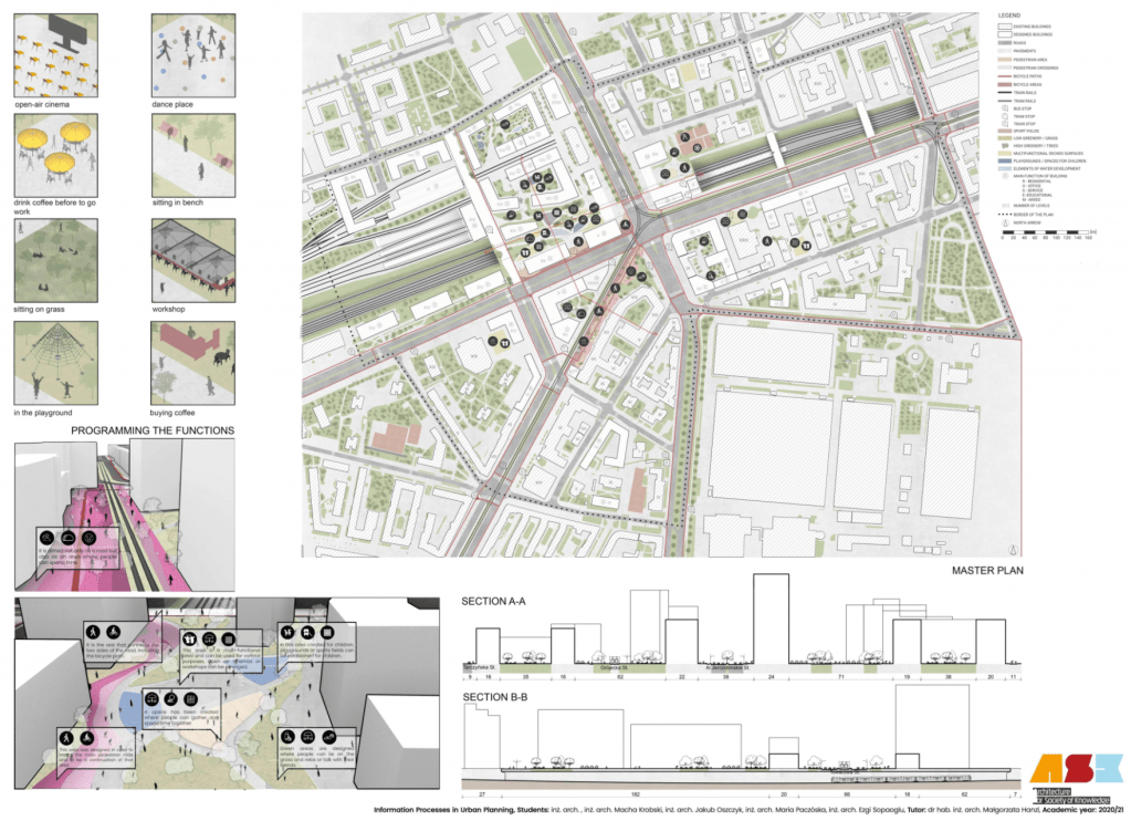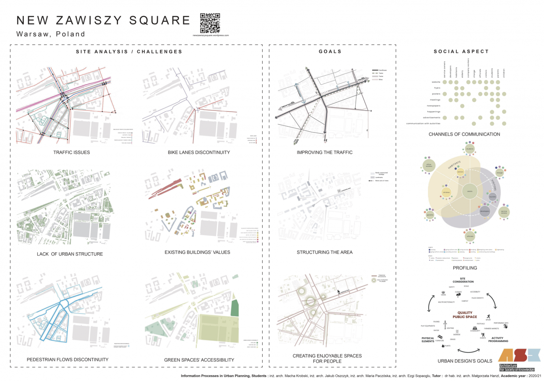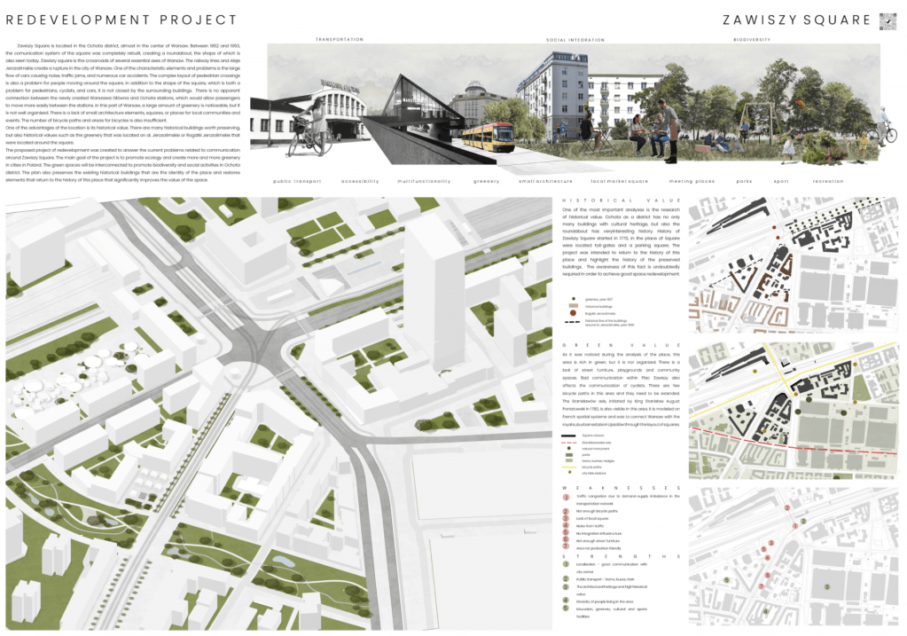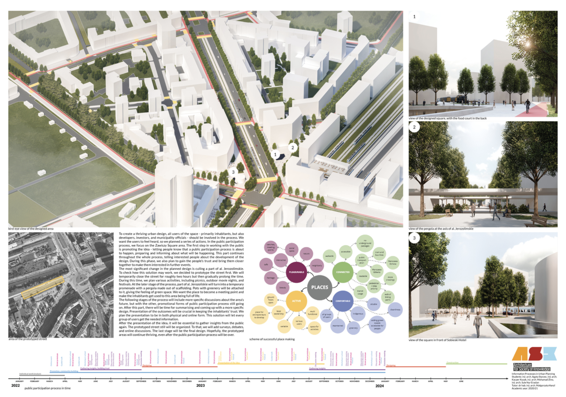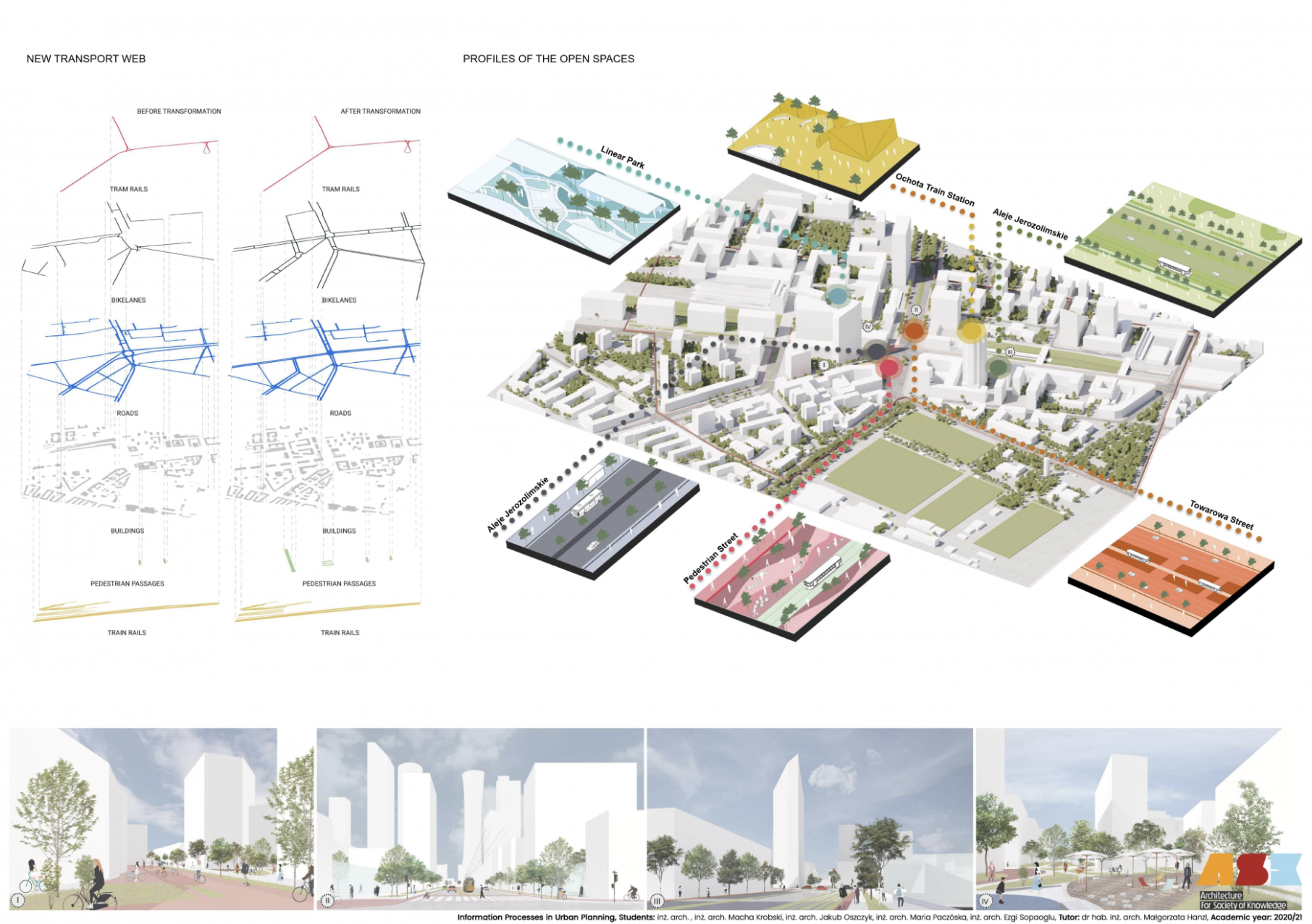 This summer semester, a group of students from the Faculty of Architecture, Warsaw University of Technology, Architecture for the Society of Knowledge MArch Course continued the work on Zawiszy Square. The project is being done in collaboration with the Warsaw Municipal Planning Office. It covered the area of the local plan of urban development enlarged to cover the direct surroundings of Zawiszy Square. The future multimodal transportation node presents multiple challenges, which we were looking to solve.