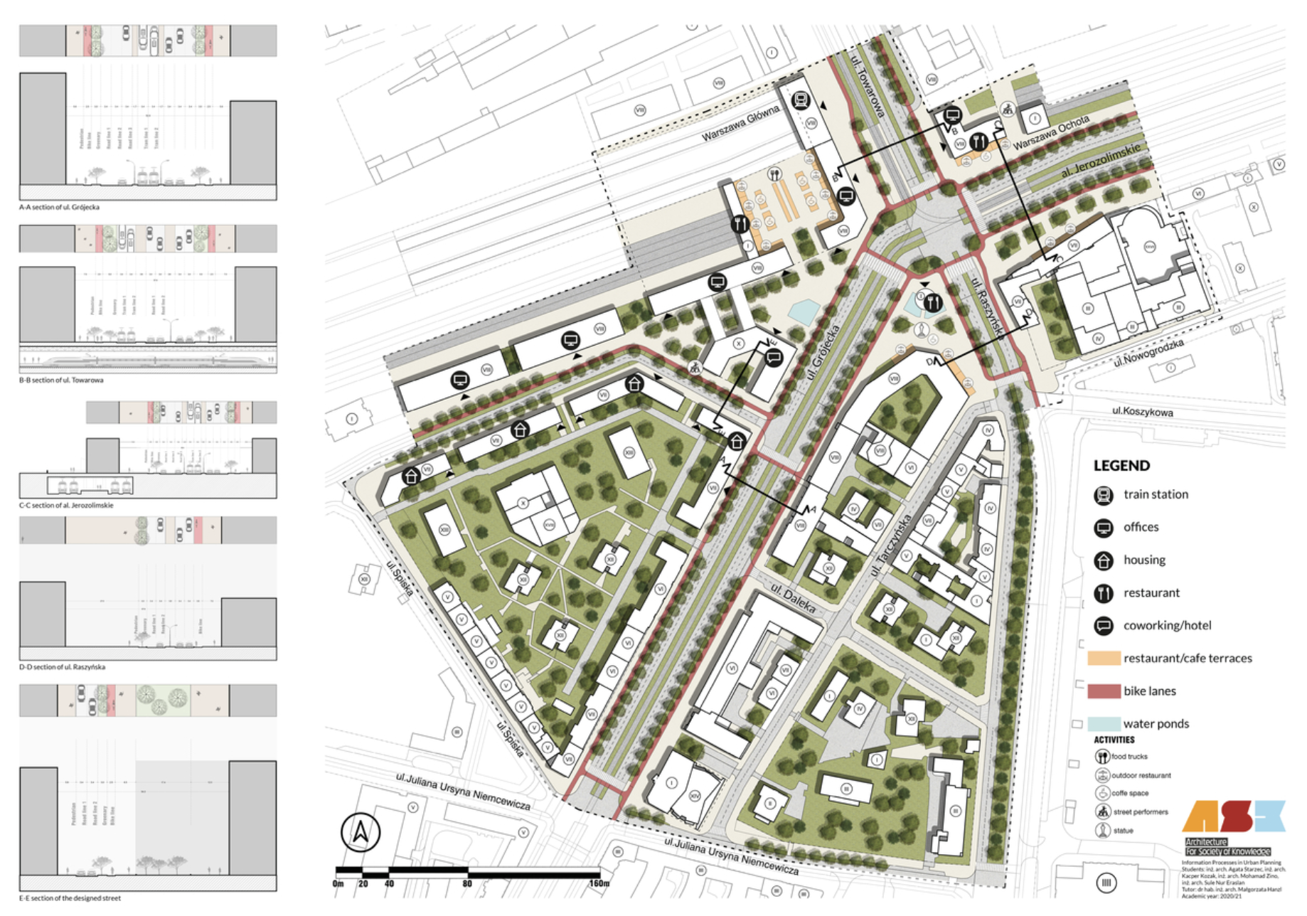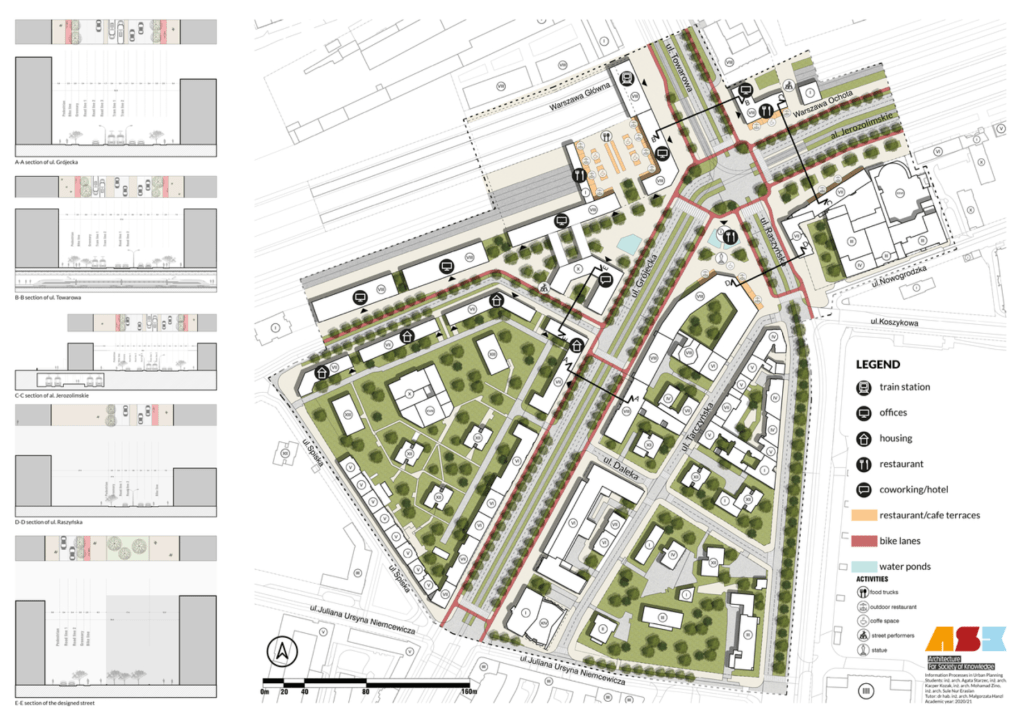 During our course we were greatly supported by our Colleagues. For the Midterm Review of the project, we were happy to welcome renowned designers representing three international firms: Jason Hilgefort from Land+Civilization Composition Hong Kong, Andries Geerse and Larissa Guschl from WeLovetheCity Rotterdam and Lia Maria Bezerra from Broadway Malyan, Warsaw division. We are also honoured to listen to the feedback of Wanda Stolarska, Vice Director BAIPP, and Ewa Tołwińska, Head of the Department of Development Warsaw. This was a great lesson which we all enjoyed.
