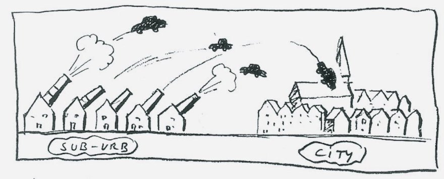 Ale to nie wszystko. I tutaj pojawia się cały katalog negatywnych konsekwencji rozlewania się zabudowy miejskiej. Od koniecznego przywiązania do auta – ze wszystkimi tego negatywnymi konsekwencjami dla samych kierowców. Te bolące kręgosłupy, otyłość, nerki, cukrzyce, itd. Oraz dla ich rodzin – patrz wyżej – plus dodatkowo izolacja społeczna dzieci i młodzieży oraz tych wszyskich, którzy auta nie prowadzą a są skazani na życie na odludziu. Po zanieczyszczenie powietrza w centrach miast – gdzie mieszkańcy suburbiów muszą dojechać do pracy i szkoły. Po odwieczny problem korków ulicznych i braku miejsca do parkowania, rozjeżdżone trawniki, itd, itp.